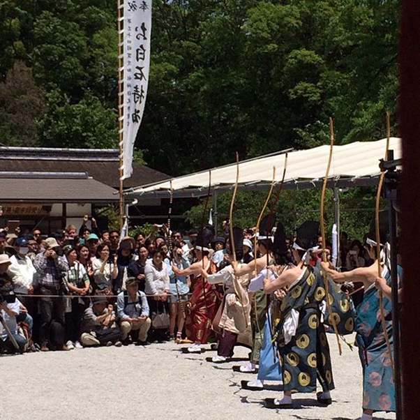 A type of exorcism ritual used to cleanse and purify the path of precession of the Aoi Festival. Priests will use traditional Japanese long-bows to shoot arrows at targets to ward off evil spirits.