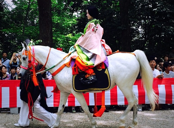 This is the main event and it is broken into two sections: the Roto-no-Gi, and the Shato-no-Gi. Roto-no-gi is a long procession of chosen participants dressed in Heian-style clothing and the Shato-no-gi is two rituals overseen by the chokushi or the Imperial Messenger.