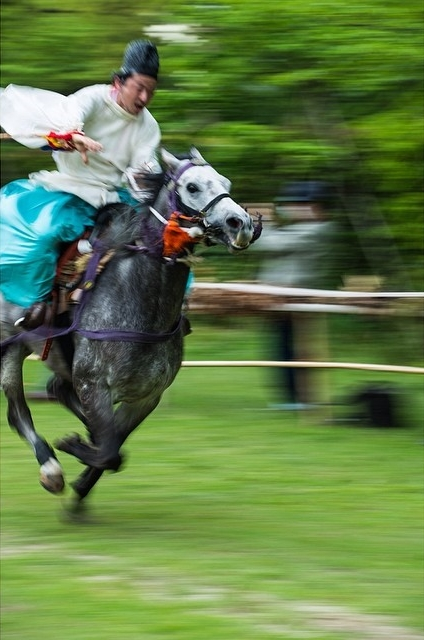 May 3rd 13:00 to 15:30 at Shimogamo Shrine: Yabusame Shinji ritual (流鏑馬神事)