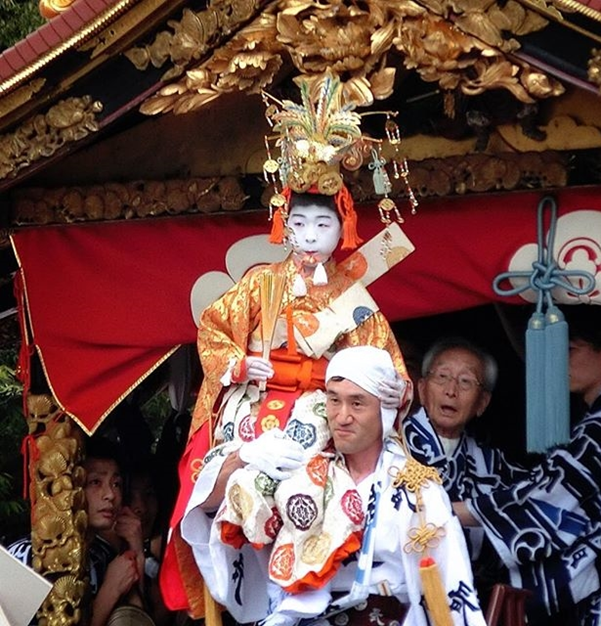 As part of the opening ceremony, the Chigo-no-mai is a stunning traditional dance performance done by the Chigo of the Naginataboko float with a small taiko drum. The chigo is a boy who is selected each year to be the representative and act as a god to lead the festival.