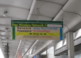 Sanjo Meiten-gai Wi-Fi – Free service offered in the Sanjo shopping arcade. The network is “Sanjo1010” or “Sanjo1020”, and the password for the secured “Sanjo1010” is “sanjotori”.